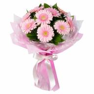 Основа композиции «Букет из розовых гербер» - небольшие герберы, именуемые гермини. Розовый цвет выражает искренность, надежду на продолжение хороших взаимоотношений, простоту и уважение. Такое сочетание идеально подходит для подарка друзьям или ребенку в честь значимого события или праздника, оставляя приятное впечатление и даря шикарный аромат.