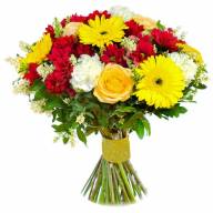 «Лира» - букет, сочетающий в себе несколько видов цветов, придавая уникальность и особенность такому комплекту. Хризантемы, розы, герберы и гвоздики показывают предрасположенность к человеку, такая композиция станет отличным подарком на юбилей коллеге или другу. Яркие цвета символизируют улыбку и радость, то, что нужно для хорошего праздника.