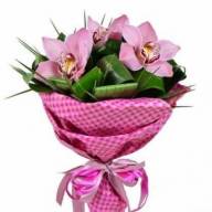 Яркий и эмоциональный букет из розовых орхидей. Данный цветок считается символом нежности, счастья и восхищения. Дарить орхидеи стоит только близким, любимым женщинам, поскольку в этих цветах скрыт чувственный подтекст. Представленная композиция усовершенствована декоративной зеленью, которая выгодно подчеркивает прелесть орхидей, придает букету загадочность.